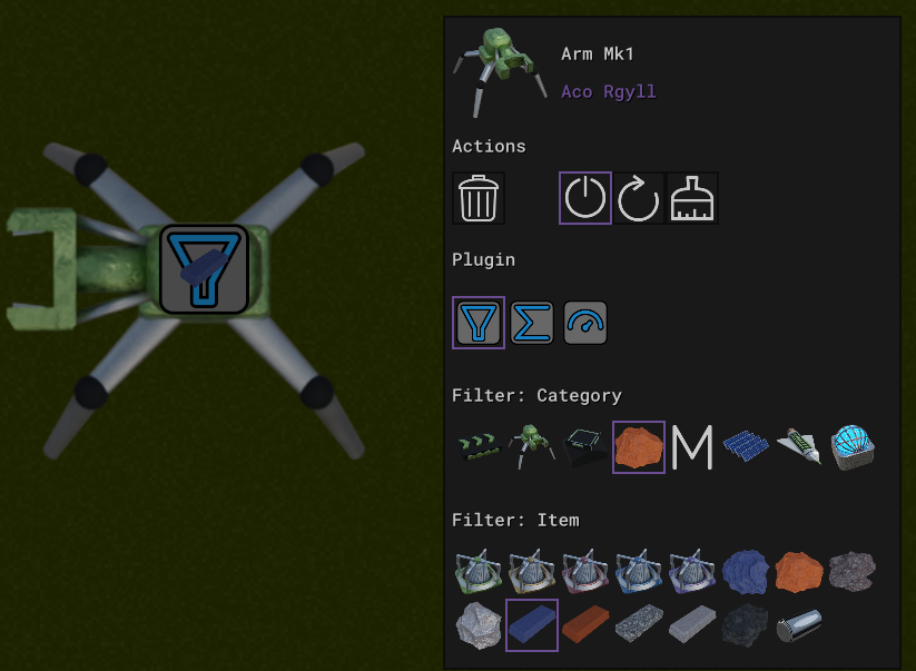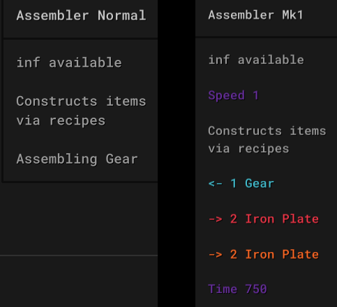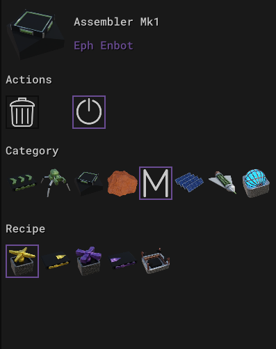 Within it I could now add useful actions that apply to that structure. In case of the Assembler one could now directly set its recipe there: