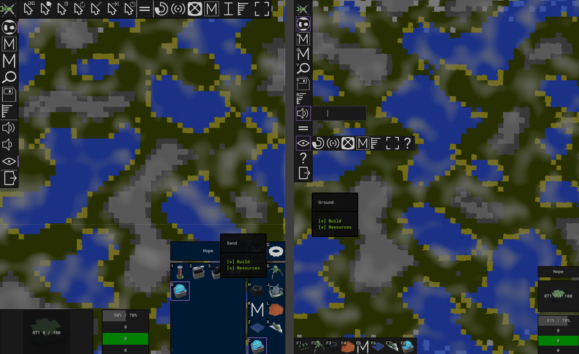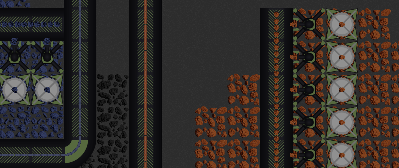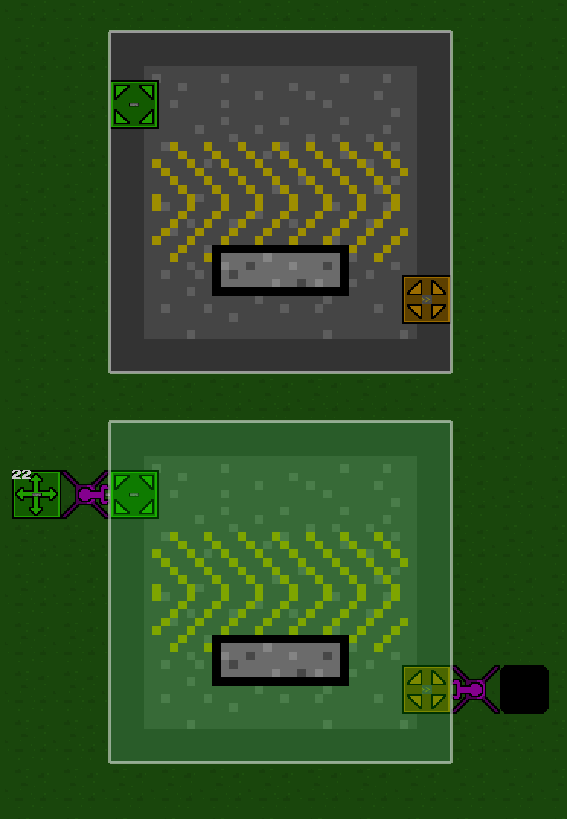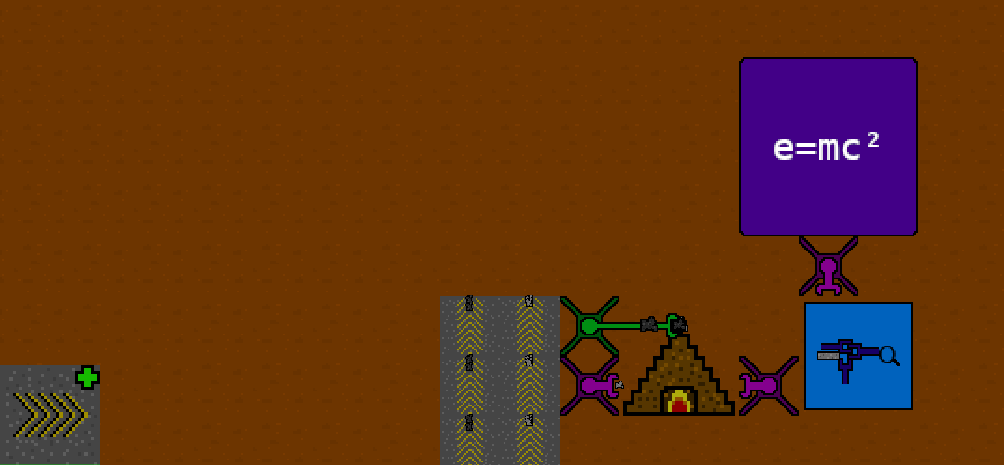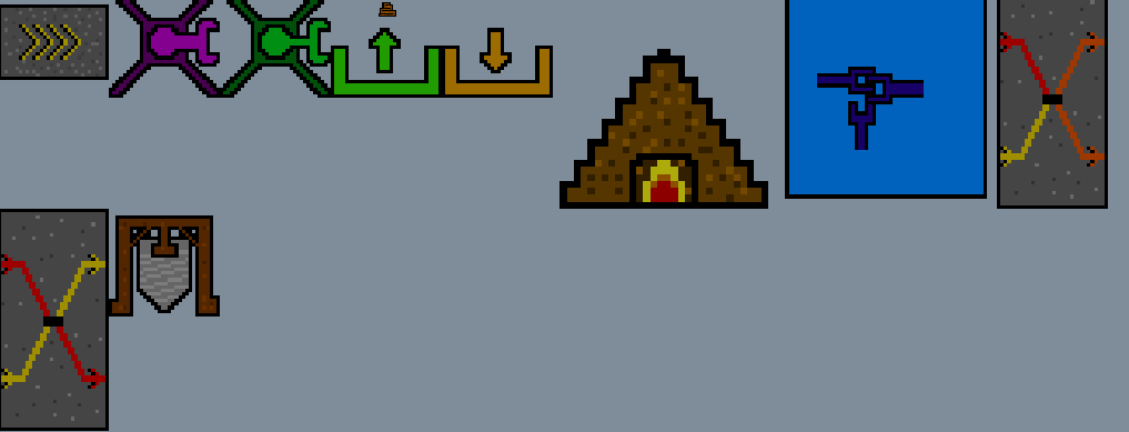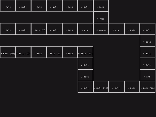 Plus the orientation > v < ^ of buildings and the item they are holding ([IO] Iron Ore):