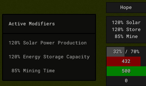 Next I introduced ‘modifiers’ to the game. By unlocking certain research technologies the player could now buff the factory on a global scale: