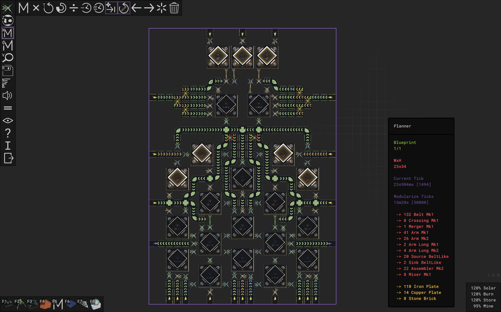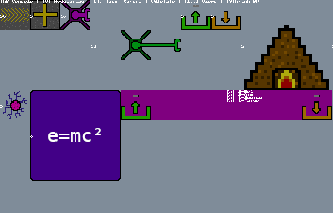 Next I finally implemented Modules. The player can use the Planner to make self-contained factories which are then simulated to create new, custom buildings blocks of practically any recipe.