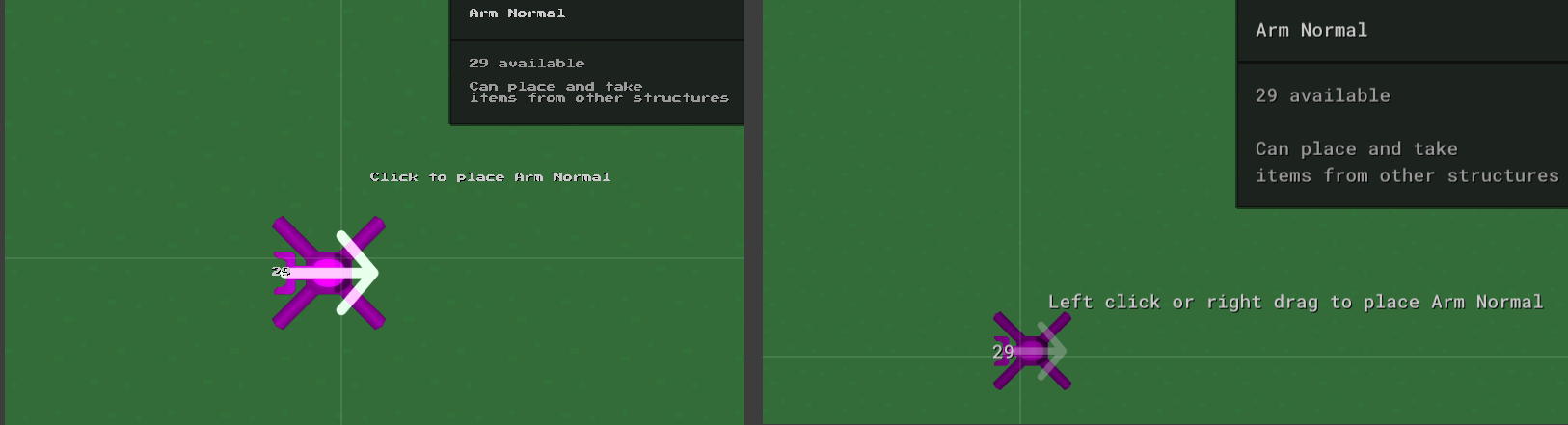 Instead of for example setting a ‘recipe cursor’ via a dedicated UI, individual structures could now be configured by clicking them to then open their new configure dialog.