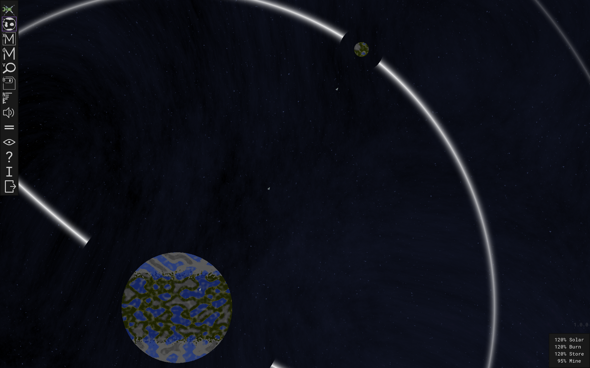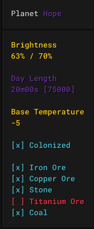 I introduced Brightness which affected the solar power production and depended on a planet’s distance to the sun and its day/night cycle.