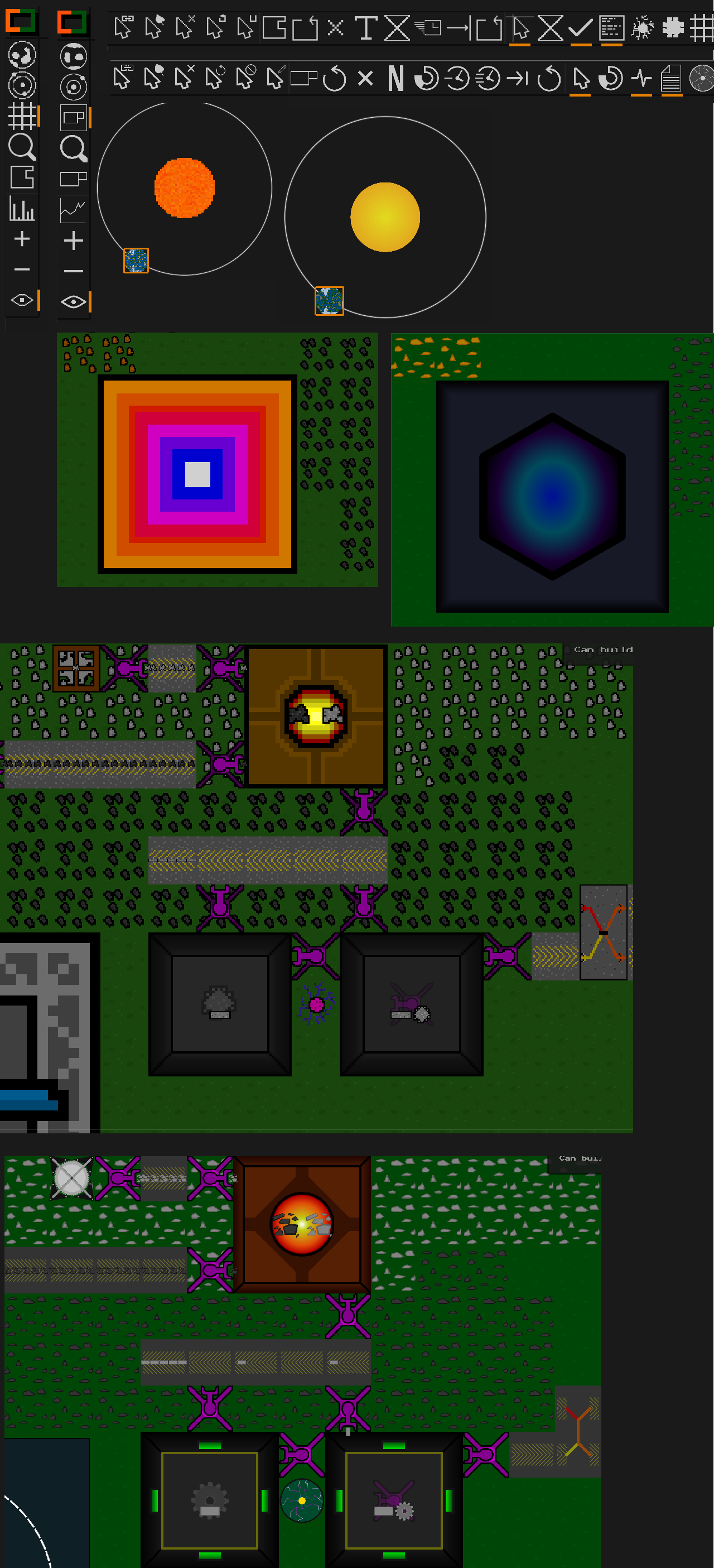 After the addition of more building types, color support and a basic copy&paste feature, Factor Y looked like this: