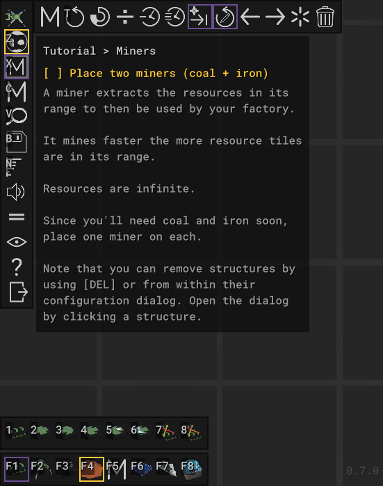 I also finally added a tutorial to the game. When active, the important UI elements to achieve a task were also highlighted.