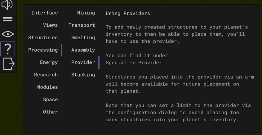 The UI rework also enabled me to easily introduce the Wiki with useful information about the game. Up until then I had to ship Factor Y with an additional .pdf guide.