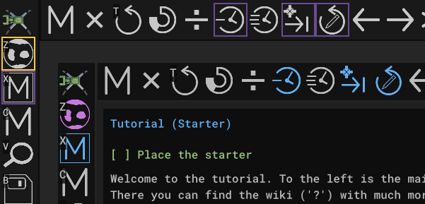 I made it possible to set the color of icons dynamically at runtime. This way icons can now be colored to for example show the active or tutorial state instead of having to draw borders around them.
