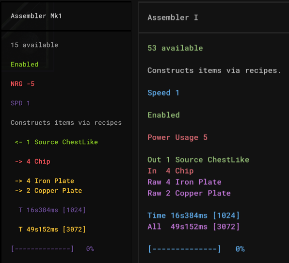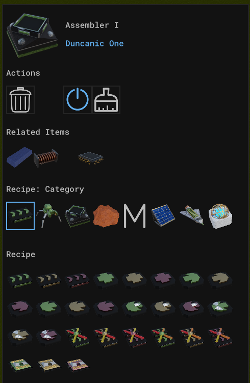 Assembler: Items used in its recipe, regardless of what’s currently ‘inside’ of the assembler -