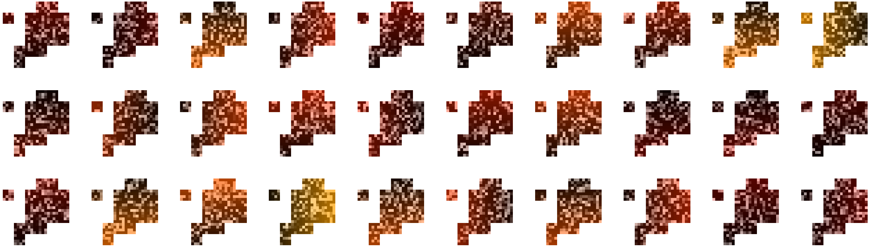 Filler pixels behave similary to walker pixels. Instead of walking or spreading into one direction, they spread radially. They stop at other pixels or after a random number of iterations.