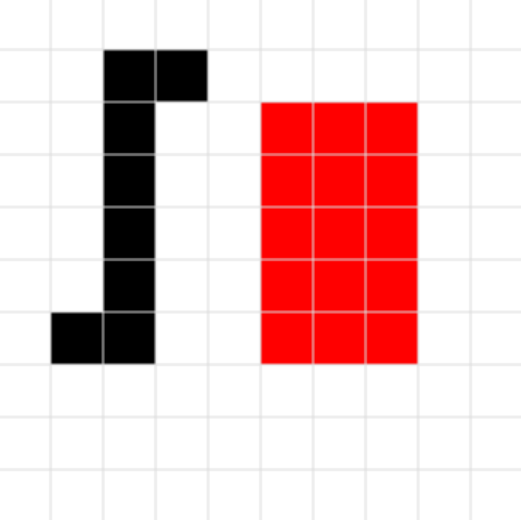 The first column’s pixels either become background or the solid border color.